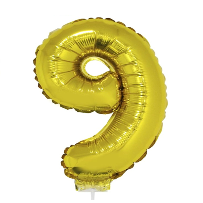BALÃO METALIZADO DE VARETA NÚMERO 9 DOURADO 16" - 01 UNIDADE