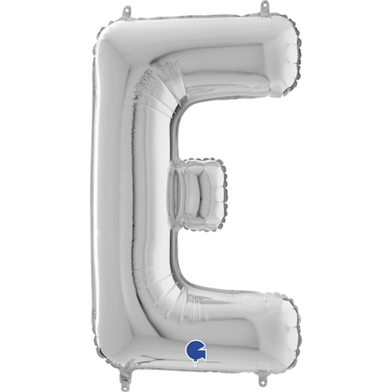 BALÃO METALIZADO LETRA E PRATA 26" - 01 UNIDADE