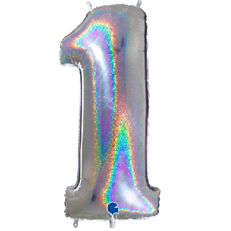 BALÃO METALIZADO NÚMERO 1 HOLOGLITTER PRATA 40" - 01 UNIDADE