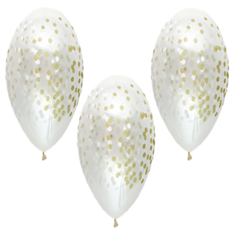 BALÃO REDONDO DE LÁTEX CONFETTI DOURADO E BRANCO 12" (APROX.31CM) - 12 UNIDADES