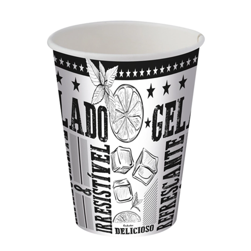 COPO PAPEL 300ML FRASES BRANCO E PRETO - 25 UNIDADES