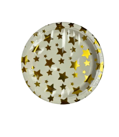PRATO DE PAPEL ESTRELAS METALIZADAS DOURADO COM 08 UNIDADES - 01 UNIDADE