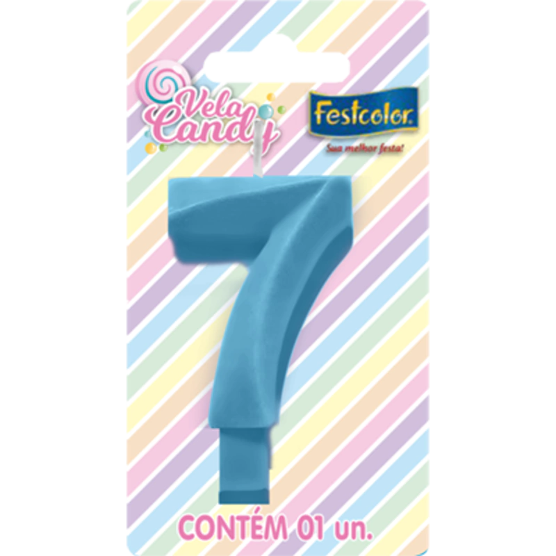 VELA CANDY AZUL NÚMERO 7 - 01 UNIDADE