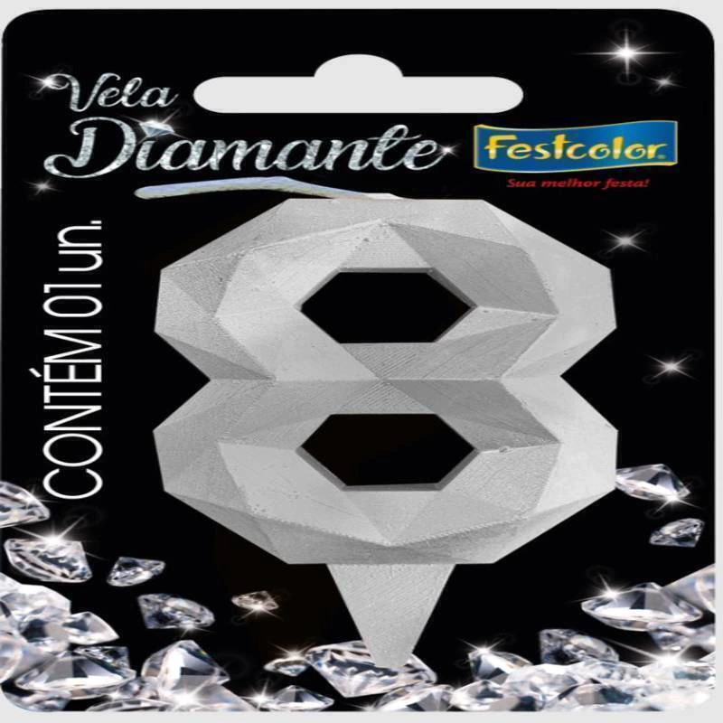 VELA DIAMANTE PRATA N° 8 - 01 UNIDADE