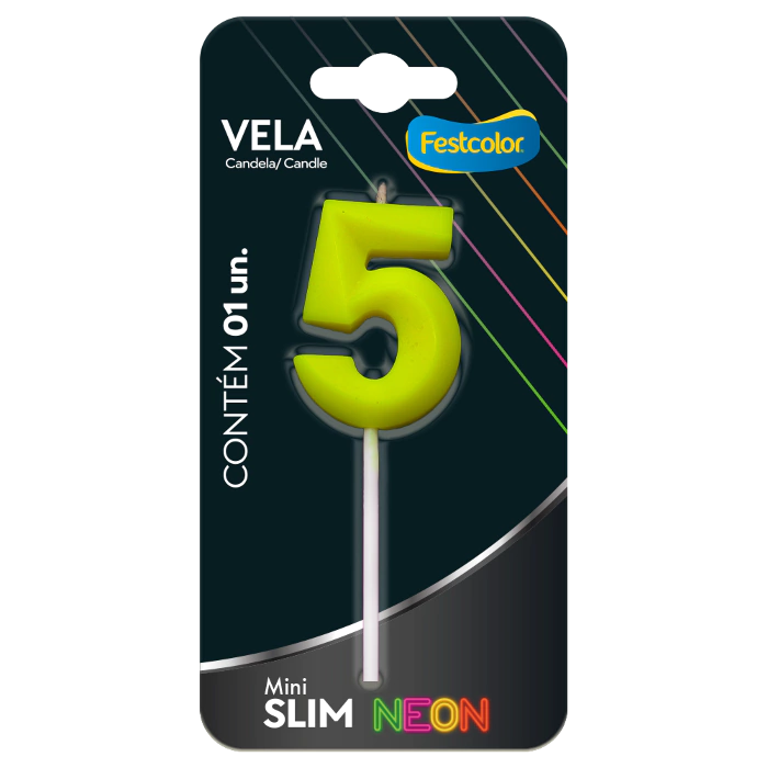 VELA MINI SLIM NEON AMARELA NÚMERO 5 - 01 UNIDADE